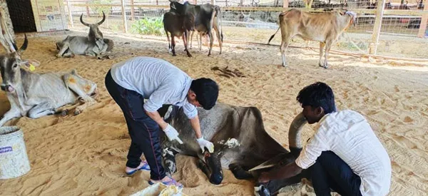 Across all major gaushalas established and managed by Shri Godham Mahatirth Pathmeda, a dedicated and compassionate healthcare unit known as “Shri Dhanvantari Gochikitsalay” operates as a vital service initiative. Here, every Gomata first undergoes thorough medical examination and initial treatment. Based on their health condition—whether critically helpless, ill, injured, or elderly—they are then carefully shifted to specialized care sections. The Gomata remain under continuous medical supervision at the Dhanvantari Gochikitsalay until they achieve complete recovery and stability.